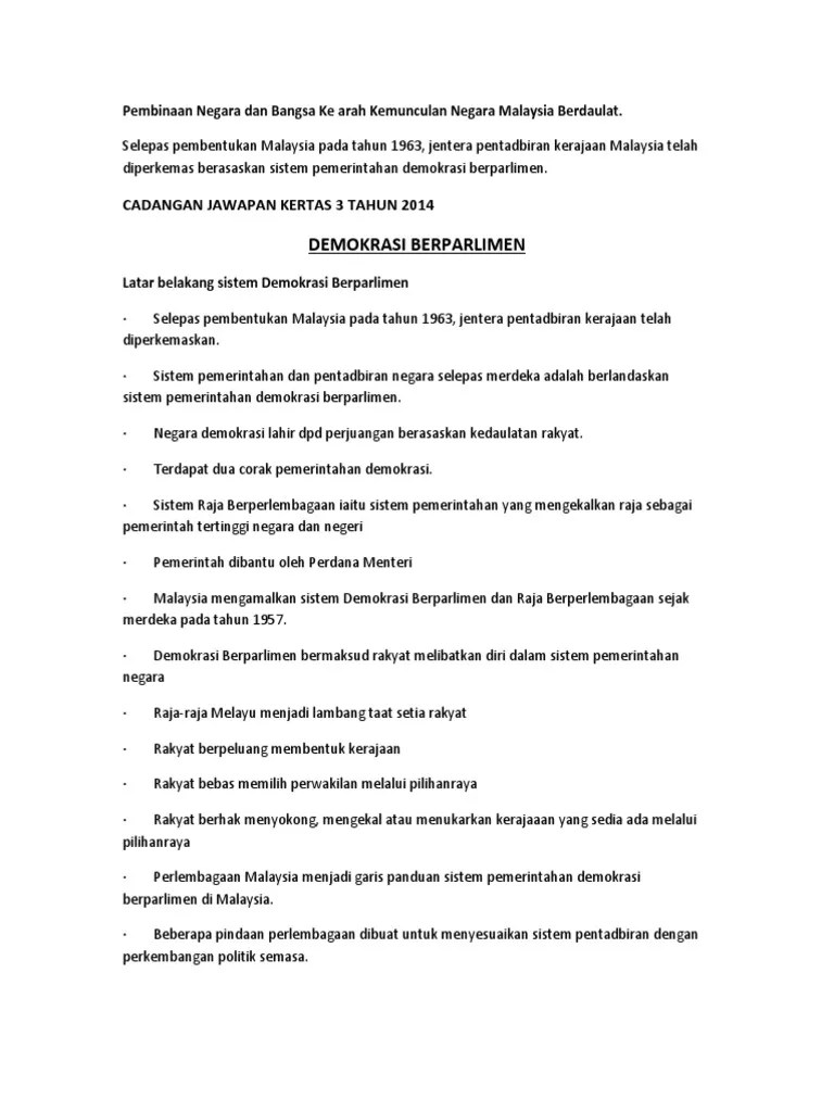 Skema jawapan pembinaan negara dan bangsa malaysia (sejarah kertas 3 spm).